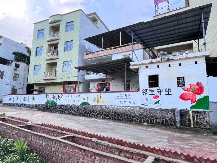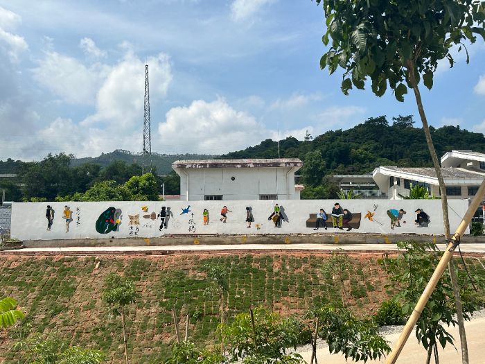 這組墻繪與去年創(chuàng)作的村落生活場景形成互文:去年以“南瑤豆腐制作”“鄉(xiāng)村鄰里情”“童年記憶”等為主題的墻繪,構成了村落的情感基底;今年新增的高鐵、校園、稻田主題,則搭建起發(fā)展維度,二者共同構成完整的文明檔案。隊員與村民的互動讓作品從“外來表達”變?yōu)?ldquo;在地生長”——種植戶校準色彩、農戶講述農耕故事,共同完成了文化主體的意義共建。