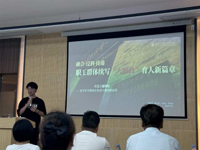 為傳承“把紅色資源利用好、把紅色傳統發揚好、把紅色基因傳承好”的重要精神,推動革命傳統教育深入基層,2025年7月8日,華東師范大學學生付卓宸、陳彤芳、楊子萱、沈昕瑤一行,作為暑期“三下鄉”社會實踐團隊,深入江西和君教育小鎮,為小鎮職工帶來一堂主題為“職工群體續寫‘大思政’育人新篇章”的生動黨課。此次活動是大學生響應“三下鄉”號召、深入蘇區鄉村開展社會實踐的重要環節,也是一次向守護紅軍舊址的基層員工反哺紅色文化、實現“雙向奔赴”的有益探索,吸引了小鎮綠化、客房服務、宣解等多個崗位的職工積極參與。