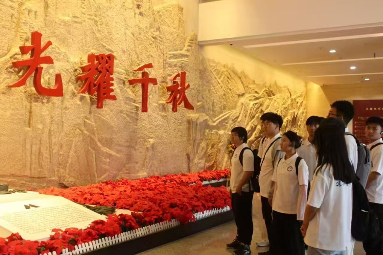 圖為隊員們觀看八路軍在太行抗戰的歷史事實。武略 攝