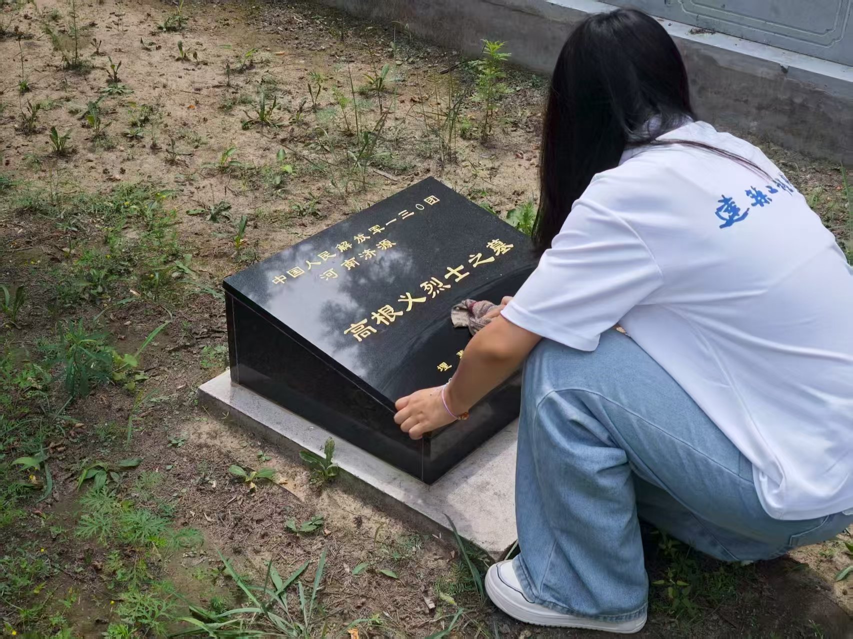 圖為隊員馬艷萍擦拭烈士墓碑。武略 攝