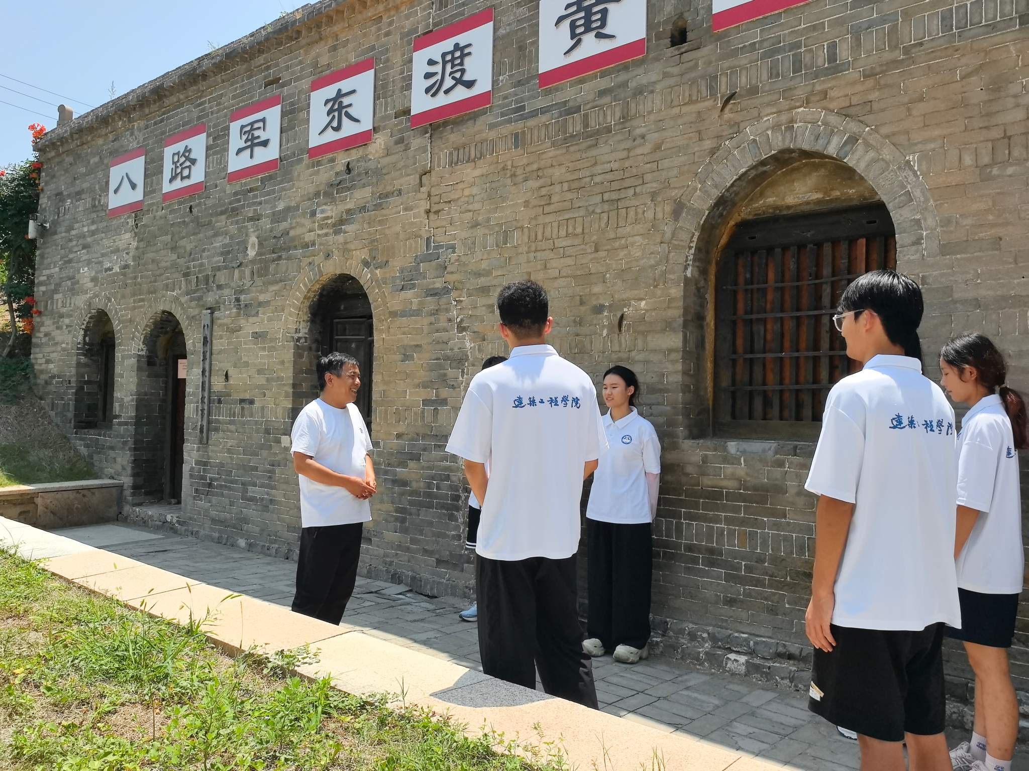 實(shí)踐隊(duì)首先抵達(dá)八路軍東渡黃河城南舊址,參觀八路軍戰(zhàn)士生活所用的石磨和那所簡(jiǎn)陋磚房,聆聽當(dāng)?shù)鼐用裰v解那段英勇事跡。