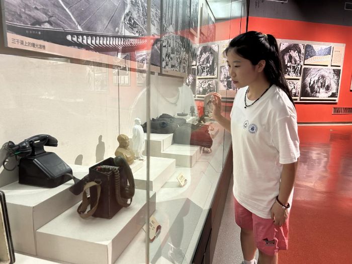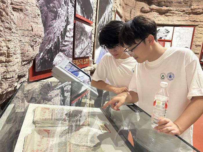 第二天,小隊(duì)成員來到紅旗渠紀(jì)念館參觀學(xué)習(xí),在紀(jì)念館內(nèi),成員們系統(tǒng)了解紅旗渠工程從艱難立項(xiàng)到全面竣工的全過程。展柜中陳列的修渠者攀崖鑿石時(shí)使用的鐵錘、鋼釬,墻上懸掛的泛黃老照片,以及"青年洞""凌空除險(xiǎn)"等場(chǎng)景復(fù)原,將隊(duì)員們帶回那個(gè)戰(zhàn)天斗地的年代。當(dāng)看到"一錘一釬一雙手,劈開太行穿山來"的實(shí)景展示時(shí),隊(duì)員們紛紛感慨道:"這些布滿裂痕的工具,分明是先輩們用血肉之軀刻下的精神圖騰。"