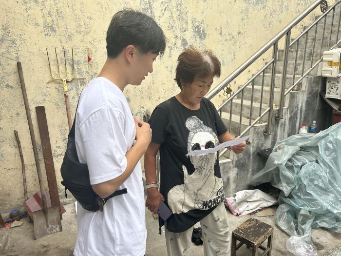 隊(duì)員們踏著晨露出發(fā),沿著蜿蜒的鄉(xiāng)間小道開啟"鐵腳板"調(diào)研。每到一戶,都耐心與村民攀談,認(rèn)真記錄大家對(duì)鄉(xiāng)村交通現(xiàn)狀的看法——從日常出行的不便到農(nóng)產(chǎn)品運(yùn)輸?shù)碾y題,從道路維護(hù)的困惑到對(duì)未來的期盼。同時(shí),隊(duì)員們還細(xì)致講解相關(guān)政策,和村民一起探討問題的解決思路,讓大家對(duì)鄉(xiāng)村振興中交通建設(shè)的意義有了更清晰的認(rèn)識(shí)。