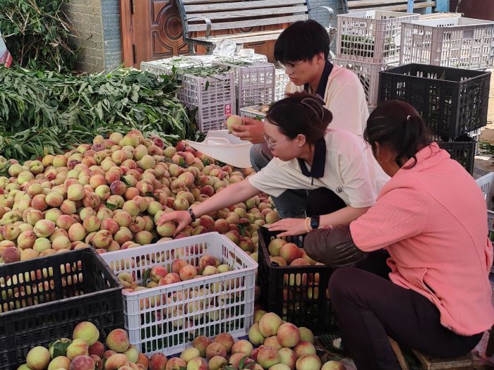 在村委會廣場,鮮桃交易熱火朝天。隊員們參與艷紅桃分揀包裝,親身感受該村以艷紅桃、黃桃為支柱產業的蓬勃景象(日銷超三萬斤,旺季達五萬斤),直觀認識到特色產業對村民增收的帶動作用。深入普梯古寨,隊員們調研民宿、手工藝等文旅資源現狀與挑戰,圍繞“用普通話講好布依族故事”積極建言獻策,并創新采用趣味形式推廣普通話,以語言橋梁助力文旅融合與鄉村振興。