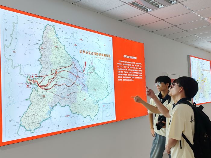 在威舍紅軍村,隊員們沿著紅軍足跡,感悟軍民魚水深情。在“銘記十日——紅軍長征過境黔西南歷史”展覽館,借助戰略轉移路線圖、武器、拓片等珍貴史料,深刻理解長征精神的時代內涵。在興義市烈士陵園,隊員們肅立默哀,瞻仰革命烈士紀念碑,細讀“為群眾安危挺身而出”的英烈事跡,通過紅色印跡展館的文物感受革命薪火代代相傳。