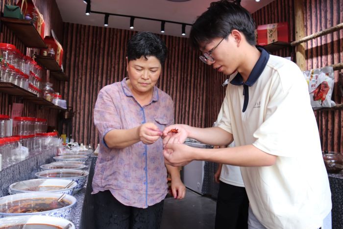 文化傳承是鑄牢中華民族共同體意識的重要紐帶,實踐隊在貴陽市龍井村的“一村百坊”非遺工坊集群中對此有了深刻體會。布依釀酒坊內,承載著布依族深厚待客文化的刺梨糯米酒飄香四溢。如今,融合生產、體驗、銷售功能的手工工坊已成為龍井村文旅融合的重要支點。壯族香坊內,沉檀龍麝的幽雅氛圍中,隊員們觀摩香粉配伍研磨,體驗香包制作,領悟蘊含其中的傳統養生智慧與天人合一理念。還有苗族銀坊,漢族陶坊,川青染坊……在這個有著上千年歷史的布依古寨里,各個民族的同胞齊聚一堂,不僅傳承融合各民族的傳統技藝,更點燃了鄉村經濟的活力。無論是釀酒坊對祖傳酒曲的世代守護,還是香坊師傅制香的專注匠心,都彰顯了文化根脈對鄉村振興的深層賦能。刺梨酒的醇香氤氳著民族魂魄,千年香道傳遞著中華智慧,龍井村的非遺工坊集群正是傳統文化活態傳承、激活鄉村內生動力、彰顯文化自信的生動樣本。