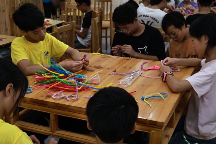 8月2日的下午,中南大學商學院椒林薪火·筑夢引航團的兩位支教老師帶著扭扭棒和粘土走進教室,瞬間吸引了所有小朋友的注意。兩位老師帶領同學們用這些工具開展一場有趣的情緒表達的藝術奇旅,近距離和孩子們互動,讓教室和椒林村里洋溢著童真與歡樂的笑聲。