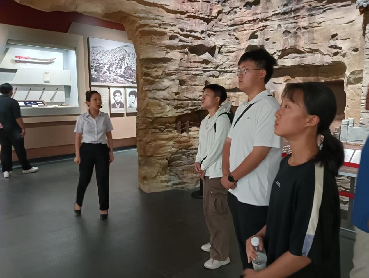 走進(jìn)綏德革命紀(jì)念館,追溯紅色歷史7月31日上午,隊(duì)員們來(lái)到了綏德革命紀(jì)念館。館內(nèi)豐富的展品和詳實(shí)的史料,猶如一幅波瀾壯闊的歷史畫(huà)卷,徐徐展開(kāi)。在講解員生動(dòng)的講述中,李子洲在陜北播撒革命火種的身影、劉玉厚帶領(lǐng)鄉(xiāng)親們墾荒拓田的場(chǎng)景,透過(guò)泛黃的照片、磨損的農(nóng)具變得清晰可感。 “看這些張李子洲的手稿,他就是這樣把馬克思主義的種子埋進(jìn)了青年心里。”講解員指向展柜里的教案手稿,紙張上的字跡雖已褪色,字里行間的赤誠(chéng)卻穿越時(shí)空。隊(duì)員們圍在“劉玉厚勞動(dòng)模范獎(jiǎng)狀”前,聽(tīng)著他“白天帶頭種地,晚上幫群眾算收成賬”的故事,拿起手機(jī)拍下墻上“寧肯累死也不能閑死”的語(yǔ)錄,低聲討論著這種奮斗精神在今天的意義。