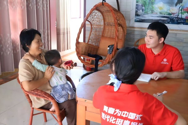 圖為實踐隊成員走訪王村村開展入戶訪談。康凌晨 供圖