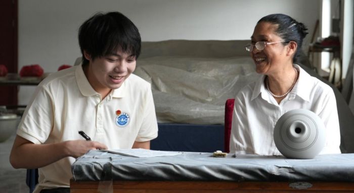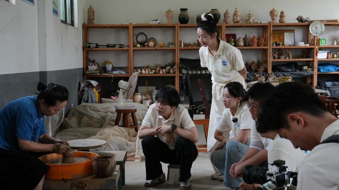 探訪期間,在邢淑芹、邢會的指導下,團隊成員們親身體驗了彩陶泥塑的揉、捏、拉坯技巧,以及雕花時“以刀代筆”的精細手法。他們深刻體會到“三分塑,七分刻”的工藝精髓,每一次下刀都需精準無誤,方能雕琢出栩栩如生的圖案。