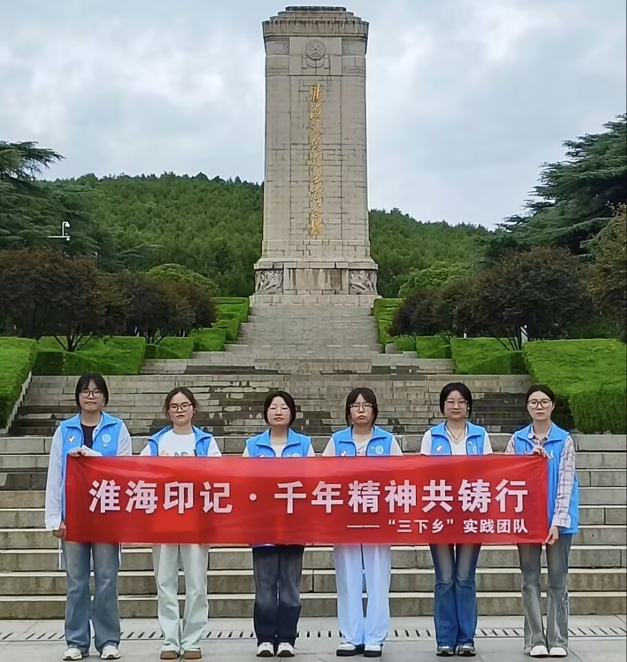 實(shí)踐團(tuán)還來(lái)到了淮海戰(zhàn)役烈士紀(jì)念塔前,這座紀(jì)念塔高聳入云,莊嚴(yán)肅穆,仿佛在訴說(shuō)著那些英勇?tīng)奚牧沂總兊膲雅e。成員們整齊列隊(duì),手持橫幅,向烈士紀(jì)念塔行注目禮,表達(dá)對(duì)革命先烈的深切緬懷和崇高敬意。他們深刻領(lǐng)悟青年學(xué)子要繼承先烈遺志,發(fā)揚(yáng)革命精神,將個(gè)人的理想追求融入到國(guó)家和民族的發(fā)展大局中去,為實(shí)現(xiàn)中華民族的偉大復(fù)興貢獻(xiàn)自己的力量。