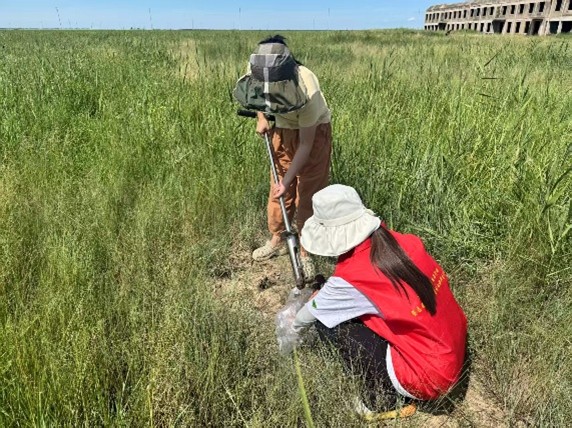 訪談結束后,團隊兵分兩路,分別奔赴黑龍江省齊齊哈爾市和吉林省白城市,沿途在 15 個點位開展土壤采樣工作。隊員們不懼烈日,認真采集每一個樣本,截至當晚 19:00,兩組均順利完成 5 個鹽堿土樣本采集。
