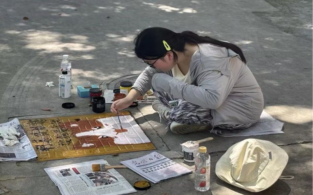 活動當天清晨,志愿者們帶著顏料、畫筆、水桶等工具準時集合,在社區工作人員的引導下熟悉場地。斑駁的井蓋、單調的路面,即將在這群年輕人的巧手下煥發新顏。“咱們兩人一組,先分工打磨井蓋表面,再根據主題構思圖案。”活動負責人的話音剛落,志愿者們便迅速結對,投入到前期準備中。