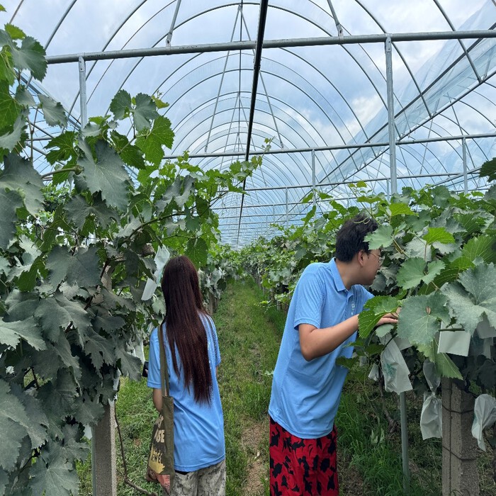 實踐團隊觀察創新品種葡萄。余競楠攝