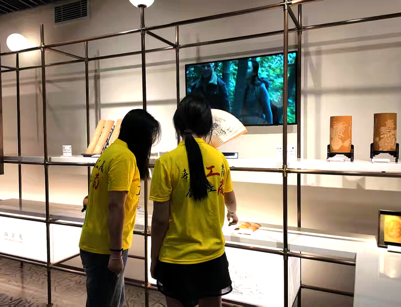 可隊員們對傳統(tǒng)工藝的贊嘆很快被遺憾取代。隊員們懷揣期待,想尋找竹刻與IP結合的成果,或是竹刻衍生的文創(chuàng)產(chǎn)品時,卻發(fā)現(xiàn)難尋蹤跡。仿佛竹刻在文創(chuàng)浪潮里,還未找到融入的端口,孤獨地守著傳統(tǒng)技藝的一方天地。這讓團隊意識到,無錫竹刻在創(chuàng)新轉化、與當下流行文化及IP融合方面,還有很長的路要走。小小的遺憾,卻讓“青刻竹韻”團隊更清晰地看見:非遺的傳承,既要有人守著根,也要有人探著路。