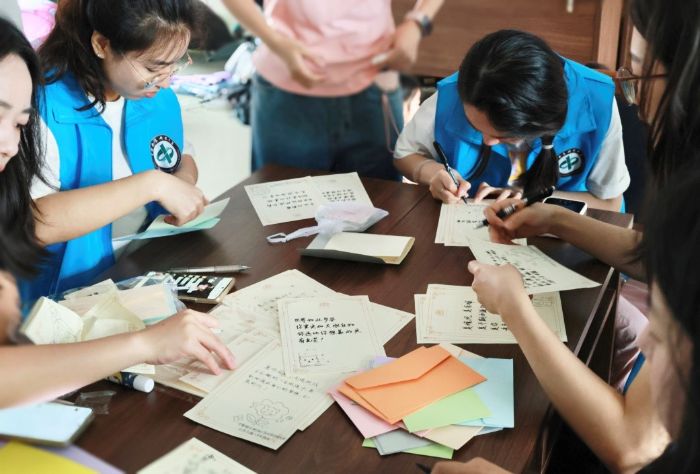 時光與守護:紙筆寄期盼,演練筑平安 “寫給未來的自己,你想說什么?”隊員們溫柔的引導聲落在孩子們耳畔。一直安靜坐在角落的彭心怡,緊緊握著鉛筆趴在桌上,寫寫停停,小小的肩膀隨著呼吸微微聳動。許久,她抬起頭,眼圈紅紅的,將一張折得方方正正的信紙輕輕塞進“未來信箱”,紙上還畫著一朵倔強的小向日葵。孩子們笨拙的筆跡、質樸的圖畫,是流淌在紙上的心河,搭建起連接當下與未來的真誠橋梁,每一筆都藏著最純粹的期盼。