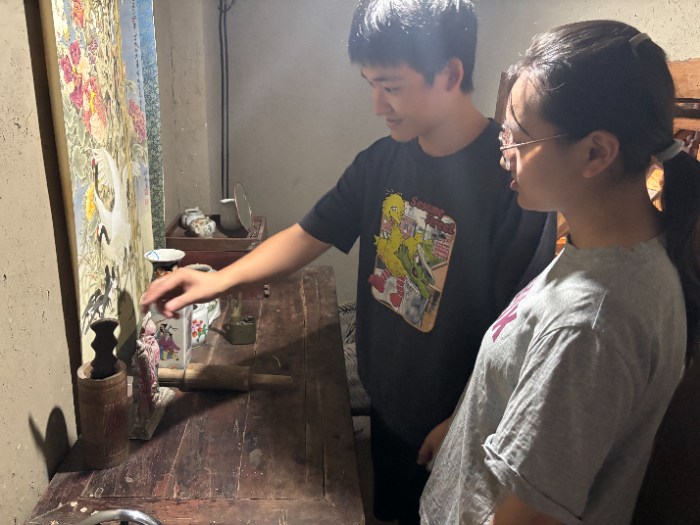 圖為團隊成員參觀如皋市平園池村農耕民俗文化館。(多彩大學生網通訊員 張升鶴攝)