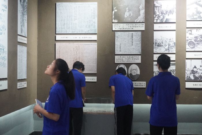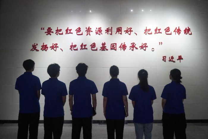 默哀儀式結束后,團隊成員步入革命烈士事跡陳列館。首先映入眼簾的便是習近平總書記的諄諄教誨:"要把紅色資源利用好,把紅色傳統發揚好,把紅色基因傳承好。"這句擲地有聲的話語,為整個參觀活動定下了基調。展館內,一件件珍貴的革命文物靜靜訴說著那段烽火歲月:銹跡斑斑的軍號仿佛還在回蕩著沖鋒的號角,泛黃的戰地日記記錄著戰士們的赤子之心,破損的黨員證見證著共產黨人的堅定信仰。我們觸摸歷史褶皺,聽見游天洋振臂疾呼鐵路工人的覺醒,看見張自安在暗夜中傳遞星火的堅毅。