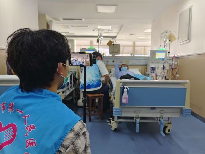 實踐團成員對訪談過程進行錄音錄像 胡佳琪 供圖 大量的訪談記錄和患者反饋,為醫院改進腎透析患者的服務提供了寶貴的參考依據。醫院可以根據這些信息,針對性地優化透析病房的環境布置、調整醫護人員與患者的溝通方式,進一步提升患者的就醫體驗,有助于醫護人員更好地與患者建立信任關系,提高治療依從性。