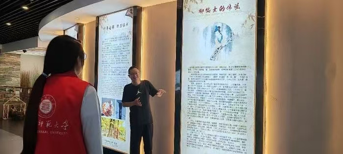 圖為講解員向團隊成員介紹柳編的歷史 董亞文攝。