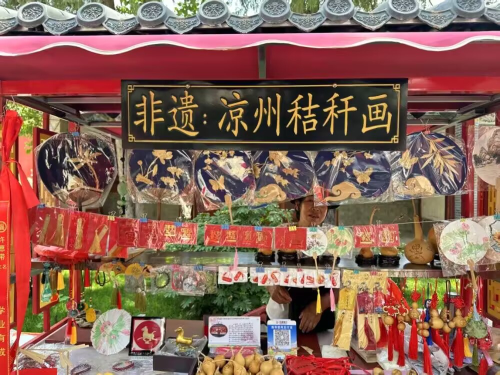 夕陽(yáng)如熔金般傾灑,實(shí)踐團(tuán)的足跡深深鐫刻在這片承載著三道文明年輪的廣袤土地上。走進(jìn)民勤防沙治沙紀(jì)念館,老治沙人皸裂的掌心輕托著泛黃照片,那麥草方格背后所蘊(yùn)含的孤勇與堅(jiān)韌,如重錘般敲擊在青年們的心間。民勤人的治沙精神,是對(duì)生存的頑強(qiáng)抗?fàn)帲菍?duì)生命的激昂禮贊,在歲月長(zhǎng)河中熠熠生輝。瑞安堡甕城垛口外,蜜瓜田翠浪翻涌,生機(jī)勃勃;紅崖山水庫(kù)碧波如鏡,平靜中倒映著人與沙洲從激烈對(duì)抗到和諧和解的壯闊史詩(shī),見證著這片土地在苦難中不屈的頑強(qiáng)與浴火重生的新生。當(dāng)夜幕緩緩垂落武威,一場(chǎng)非遺的星火盛宴絢麗開啟。實(shí)踐團(tuán)踏上精神尋根之旅,與非遺傳承人傾心對(duì)話:拜訪秦腔第六代傳人,感受古老藝術(shù)那鏗鏘有力的獨(dú)特韻律;奔赴武威區(qū),同涼州編織、涼州秸稈畫非遺傳承人促膝長(zhǎng)談。剪紙時(shí)銀剪翻飛,絲綢古道上的駝?dòng)败S然紙上;涼州攻鼓踏碎寂靜,羊皮鼓聲里漢唐血脈奔騰不息;復(fù)刻銅奔馬昂首,青銅弧線勾連起絲路的輝煌驕傲。從治沙人栽下的生存之根,到非遺人刻寫的文明密碼,青春化作貫通古今的橋梁,觸摸著生命的史詩(shī)。
