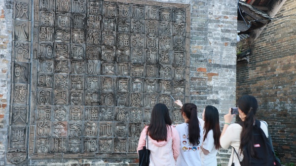 在實地走訪了那些古老的建筑遺跡后,經(jīng)過多次討論,團隊最終確定以“文物+”為主線,著重“文化記錄”“創(chuàng)意轉(zhuǎn)化”兩大抓手的古村文化保護傳承方案。團隊在對古村人文景觀整體把握基礎(chǔ)上,堅持內(nèi)容導(dǎo)向的同時根據(jù)當代文創(chuàng)設(shè)計突出特性,選取了宣星村福壽墻為內(nèi)容、文化依托。