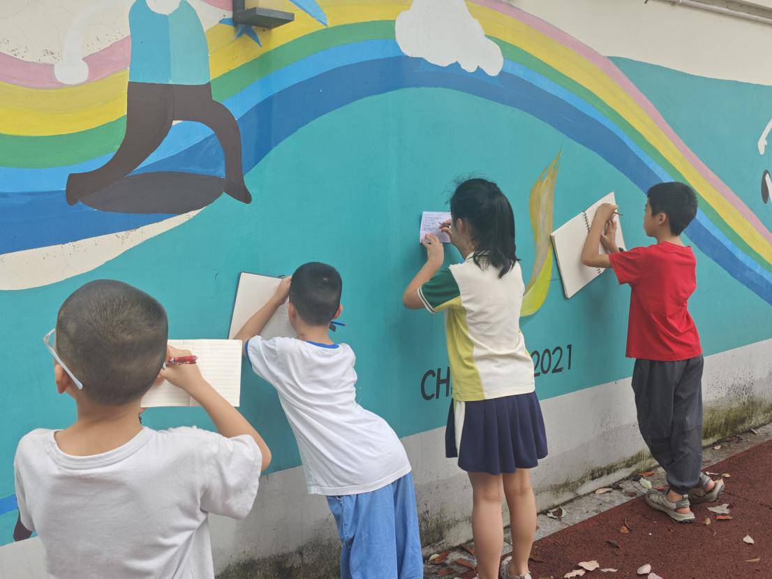 圖為社區(qū)兒童積極記錄觀察情況(胡壹鳴 供圖)