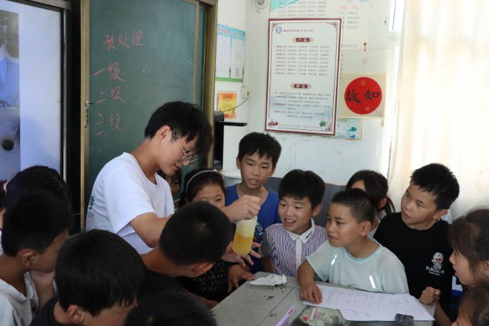 開設課堂傳知識,播撒種子育初心——開展污水治理科普活動 調研最后,團隊走進淮陰區馬頭鎮碼頭中心小學和盱眙縣黃花塘鎮舊鋪社區暑托班,結合調研收獲,梳理專業知識,為這里的鄉鎮小學生開設“循淮水足跡,筑治污防線”污水知識小課堂。課堂上,隊員們從污水的來源切入,用通俗易懂的語言講解了污水對自然環境、動植物及人體的危害,介紹了污水處理流程與再生水利用方式。講解內容貼近生活實際,如生活中可對洗菜淘米水進行二次利用、工地周圍噴灑水霧是為了降塵等,都是孩子們生活中可見可學的事例。