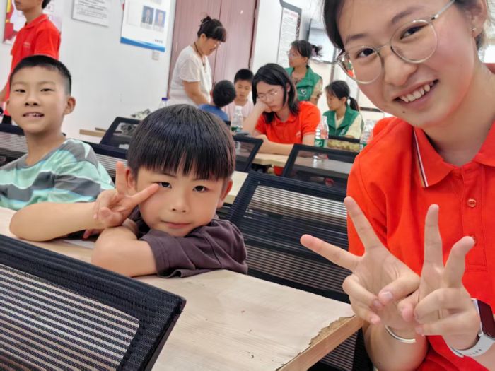 “老師,我的燈泡亮起來了!”2025年7月8日,安徽師范大學化學與材料科學學院赴蕪湖“循化工舊夢,啟時代新章”團隊走進學府社區,開展“新能源啟蒙&作業幫幫團”宣講活動。團隊成員帶著對科普的熱忱,在這里與孩子們共度了一段充滿奇思妙想的時光。