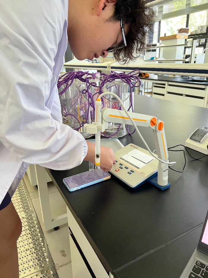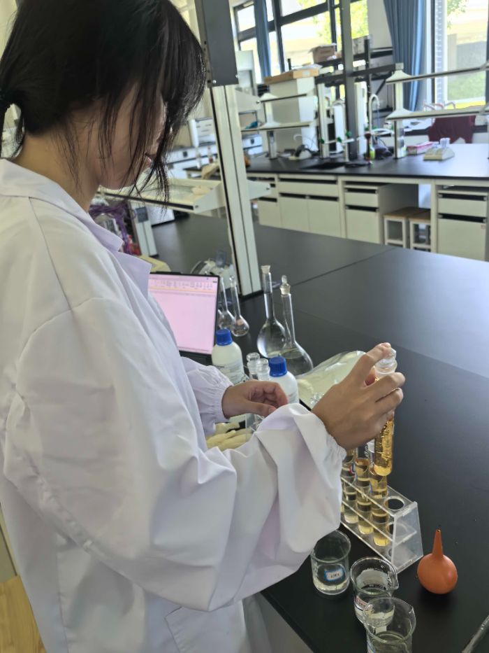 之后,實踐隊回歸校園實驗室,對采集的水樣、空氣樣品開展專業檢測。在水質檢測環節,隊員們結合大一階段化學實驗所學知識,利用前期水樣采集,有序開展水質pH與氨氮含量檢測。試劑與儀器就位,pH被精確測定,成員們捕捉水質酸堿信號、檢測氨氮解碼氮素密碼,每一步都在水環境中探索,助力直觀、客觀了解水質狀況,為水污染防控、水環境治理提供科學可靠的依據,守護水生態健康。
