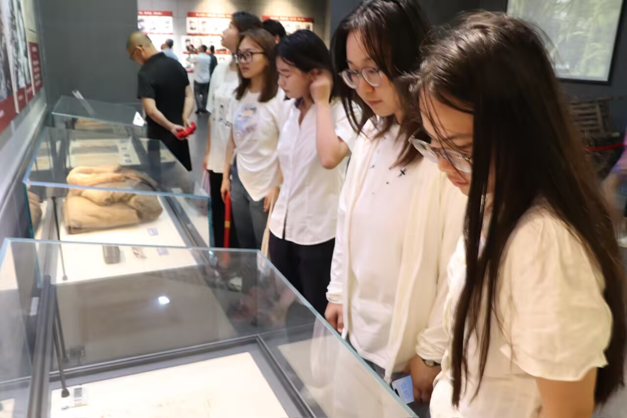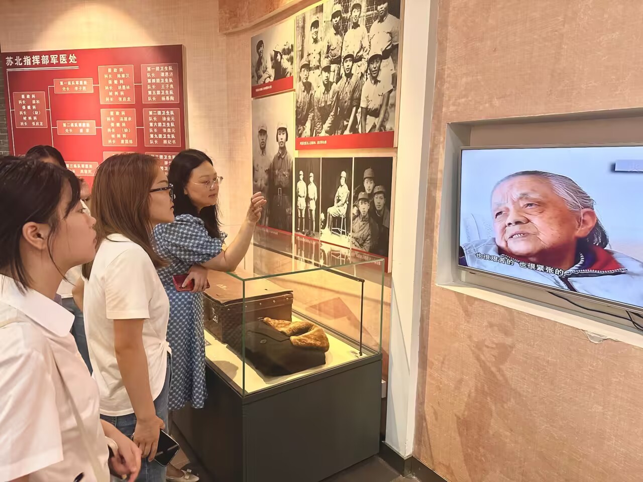7月27日清晨,南京財經大學三下鄉團隊懷著崇敬的心情來到新四軍黃橋戰役紀念館。館內的每一件文物都承載著一段崢嶸歲月,從銹跡斑斑的步槍到泛黃的作戰地圖,從戰士們穿過的補丁軍裝到百姓支援前線的扁擔,無不訴說著當年的浴血奮戰。團隊成員們認真聆聽講解員的介紹,不時在筆記本上記錄關鍵信息。在“軍民魚水情”展區,當聽到當地百姓連夜趕制燒餅支援前線的故事時,不少同學眼眶濕潤。團隊成員潘穎表示:“課本上的歷史在這里變得鮮活可觸,革命先烈的犧牲精神讓我深受震撼。”