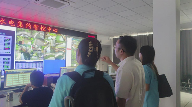在縣小水電集約智控中心,3塊大屏幕上分別顯示著水電站機組實時運行數據、視頻監控影像、生態流量監管影像,能對納入的50余座小水電站進行"一屏管理、一鍵控制、無人值守",實現100%實時監測。石站長向實踐團演示了具體的監控畫面以及接入集控中心的電站分布圖,讓團隊成員直觀感受到科技為傳統產業帶來的變革力量。