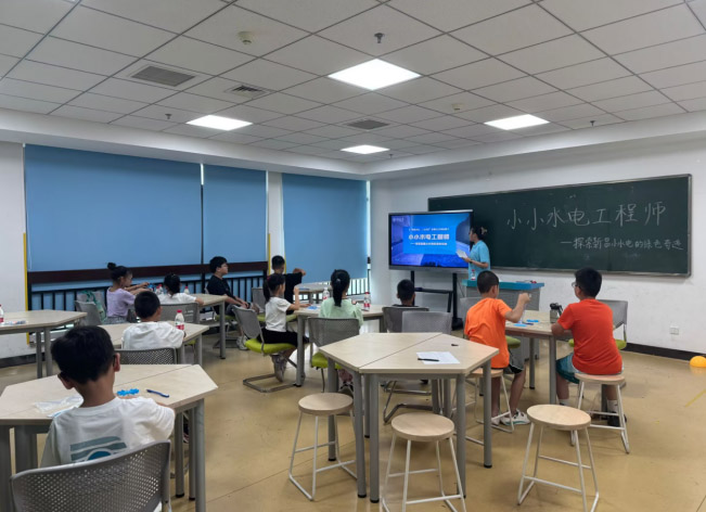 在動手實踐環節,孩子們分組協作完成水力發電模型的拼裝。當水流沖擊葉片帶動發電機運轉,小燈泡亮起的瞬間,科學原理在他們心中投下了清晰的倒影。