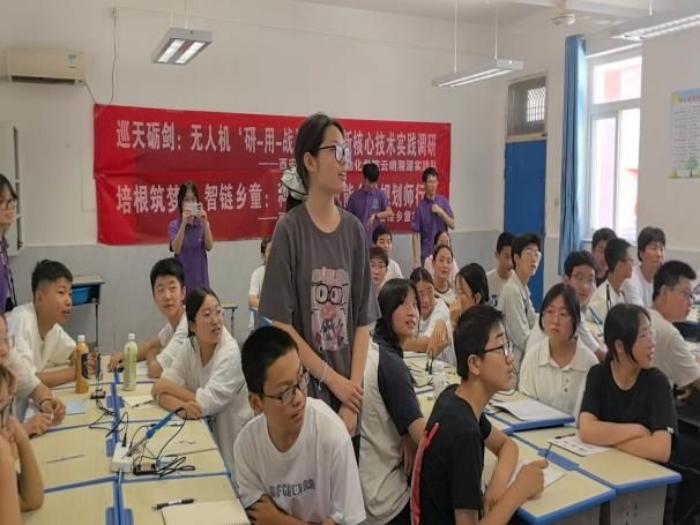 無人機模塊負責人呂世陽以“會飛的眼睛”作喻,結合實物講解飛行原理,鏈接國家數字鄉村建設需求,介紹其在農田測繪、災害巡檢等鄉村應用場景。當隊員們指著無人機機身上的螺旋槳,解釋“四個旋翼通過轉速差實現升降與轉向”的基本原理時,學生們盯著那些飛速轉動的葉片,突然明白:原來這看似靈巧的飛行,背后是力學與空氣動力學的精準配合。