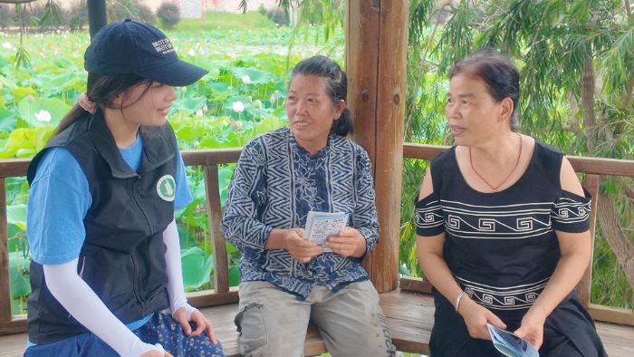 圖為實踐團成員向村民介紹防詐騙知識 薛一江攝