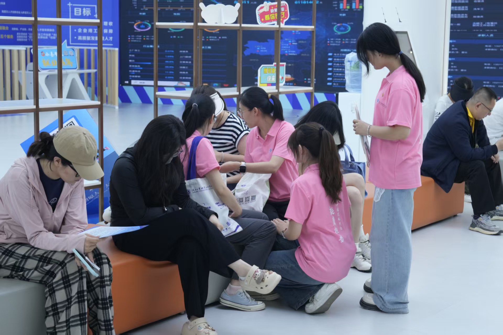 圖為秦創(chuàng)原人才大市場講解員為團隊成員企業(yè)招聘等窗口。陳奕澤供圖