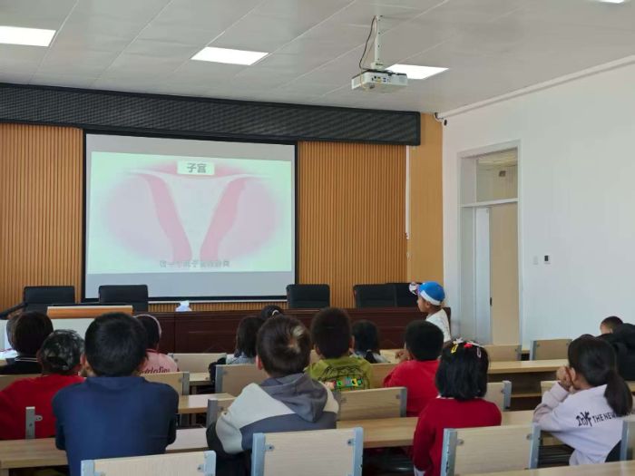 課堂上,李彥康老師和白成莉老師用孩子們易于理解的語言和精心準備的科普視頻,溫和而清晰地講解了男性和女性身體構造的基本差異。“就像花兒有不同種類,我們每個人的身體也有獨特的設計”,支教團成員幫助孩子們理解差異是自然的、美好的。重點引導孩子們認識身體的隱私部位,強調這些部位屬于自己,需要好好保護和尊重。同時白老師向大家科普展示了衛生巾的作用與使用方法,并倡導拒絕月經羞恥,培養和樹立健康科學的觀念意識。