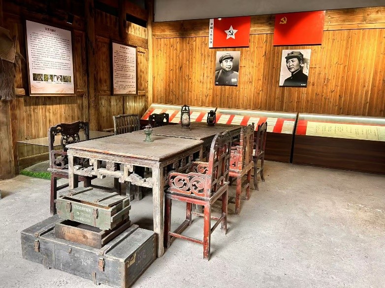 抵達舊址后,隊員們首先觀看了由當地小學生精心演繹的“十字路會議”紅色故事視頻。“同志們,敵人的封鎖再緊,咱們的紅旗也不能倒!”、“哪怕只剩一盞油燈,也要把革命的方向照亮!”稚嫩卻有力的臺詞,讓隊員們仿佛穿越時空,回到了那個戰火紛飛的革命年代。隨后,在村書記的帶領下,隊員們參觀了十字路會議舊址。舊址內,歲月沉淀的氣息撲面而來,斑駁的墻壁上懸掛著一幅幅珍貴的歷史圖片,雖歷經時光洗禮,卻依然清晰地展現著當年紅三軍在此開會的場景。一件件陳舊的革命文物靜靜陳列,每一件都承載著厚重的歷史,無聲訴說著紅三軍休整期間作出的重大決策。