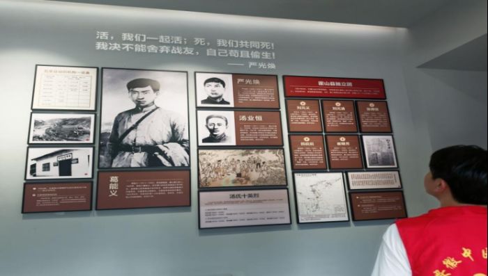 陳列的紅軍武器、生活用品,帶著歲月的痕跡,靜靜訴說著先輩們的艱苦斗爭;墻上的英雄群像與事跡介紹,讓喻本鈞、徐成基等革命先烈的形象愈發(fā)清晰、高大。大家駐足凝視,認真聆聽講解,深入了解大別山革命根據(jù)地從創(chuàng)建到發(fā)展、壯大的艱辛歷程,深刻感悟革命先輩們堅定的理想信念與大無畏的犧牲精神。