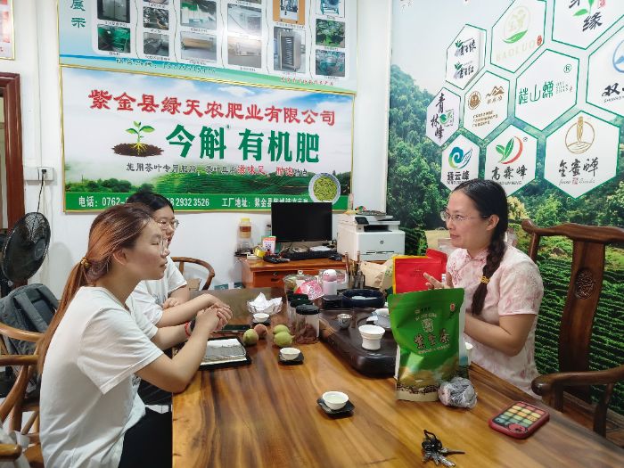 團隊成員深度走訪當地茶企,通過實地參觀茶廠與深度訪談,深入了解龍窩鎮茶產業發展瓶頸。紫金蟬茶口感獨特,具有“蟲咬蜜香”特質,但存在散戶經營為主、銷售渠道單一、品牌辨識度不高等問題,深陷“好茶難出山”困局。團隊據此提出“紅色IP+數字營銷+茶旅融合”發展方案,建議企業依托紫金蟬茶品牌優勢,結合紅色文化元素,構建“文農互融”的新型產業生態。