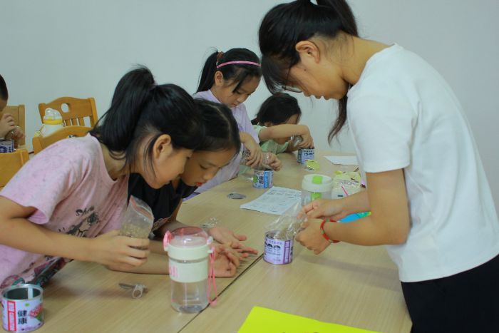 圖為青馬啟航隊成員指導小朋友種子育苗。葉晴晴供圖