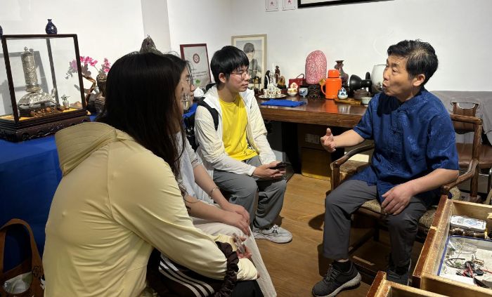近日,揚州大學馬克思主義學院“尋非遺薪火,育認同情懷——探尋揚州非遺增進大學生文化認同實踐團隊”走進揚州非遺珍寶館大師工作體驗區,通過面對面訪談非遺傳承人、沉浸式體驗非遺技藝等形式開展為期3天的實踐調研活動,深入探尋非遺增進大學生文化認同的有效路徑。
