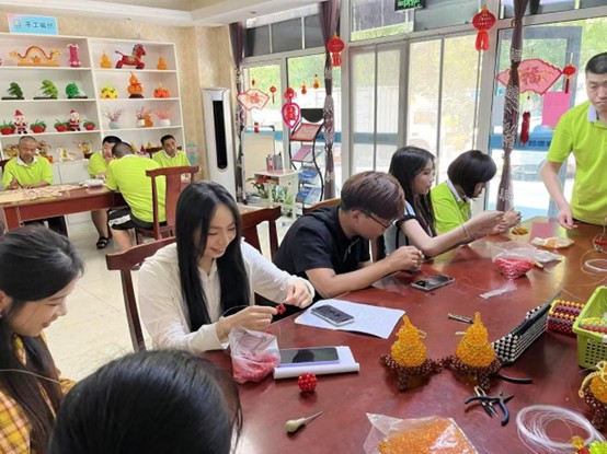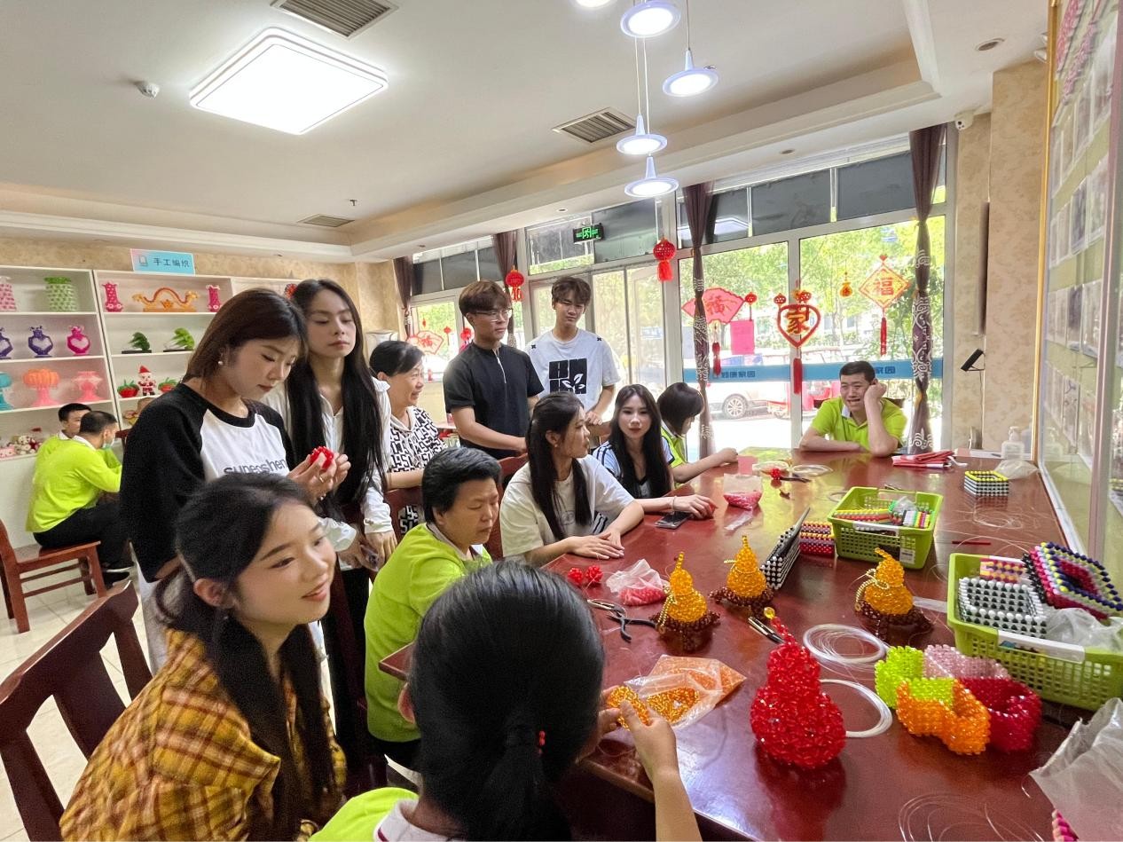 在交流過(guò)程中,五彩的珠子在一雙雙專注的手中被串聯(lián)起來(lái)。