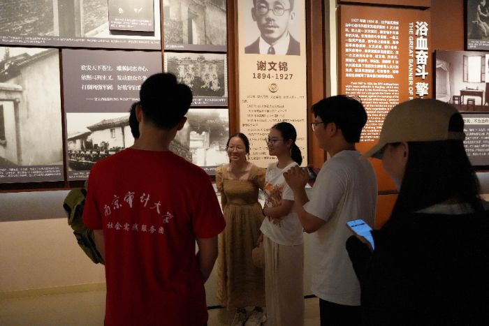 7月8日,學習小分隊首站踏入渡江戰役紀念館。武器展陳區里,銹跡斑駁的步槍、磨損的船槳有序陳列,講解員對烈士犧牲細節的講述,讓隊員直觀感知革命的犧牲。7月10日,小隊轉場雨花臺烈士陵園。在紀念館多媒體放映廳,一部講述雨花英烈事跡的紀錄片緩緩播映。屏幕上,鄧中夏在獄中仍堅持學習、何寶珍面對酷刑始終堅貞不屈的畫面,讓在場隊員深受震撼。參觀結束,團隊成隊員對紅色文化有了具象化的認知。他們在渡江戰役紀念館觸摸那艘布滿勒痕的“渡江第一船”船槳,又在雨花臺烈士紀念館凝視鄧中夏的獄中詩稿時,突然領悟了紅色文化的一脈相承:雨花臺的青石板上,先烈們把“信仰”刻進生命倒計時;長江的波濤里,戰士們將“希望”綁在船舷上。這些“星火”澆筑成革命精神的脊梁,成為引領人們向前的精神豐碑。