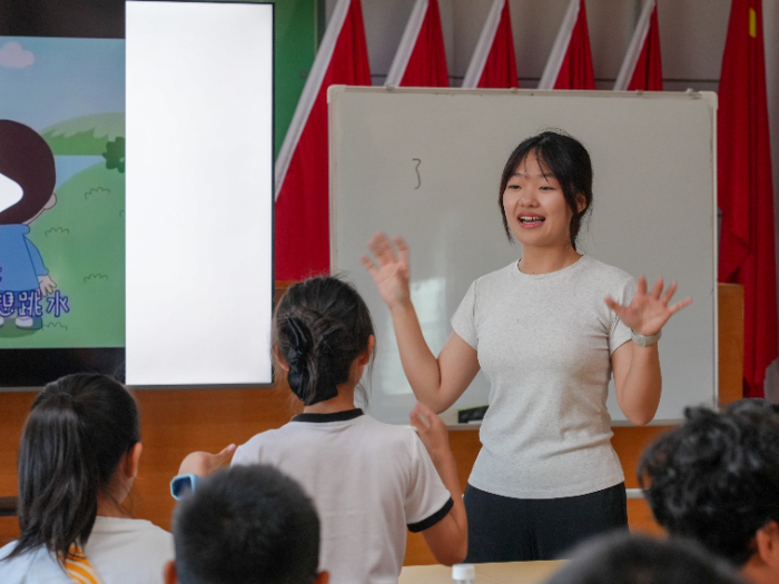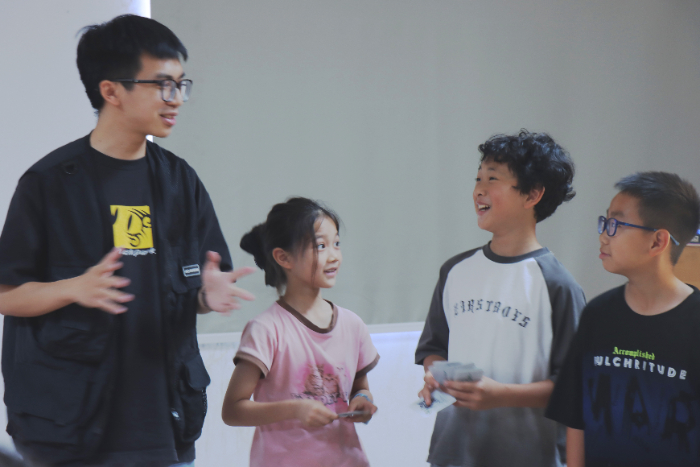 圖:支教老師向分享粵劇小游戲的規則(鄧飛翔 攝)