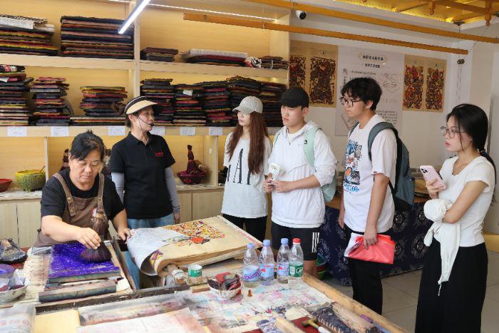 圖為傳承人向實踐隊員演示木版年畫拓印過程的場景。 張芳瑜 供圖。