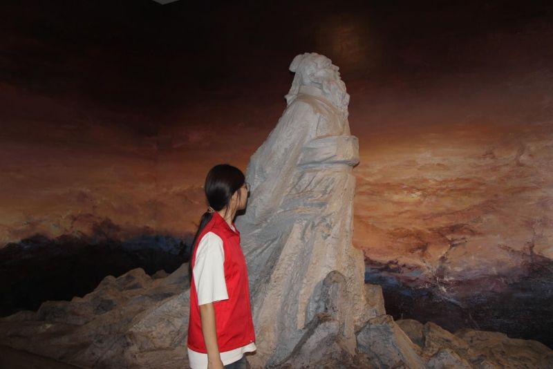 在孔子博物館,同學們通過“孔子的一生”“儒家思想的形成與發展”等主題展廳,系統學習了孔子周游列國、杏壇講學的歷史脈絡。隊員劉文靜佇立在孔子雕像旁,凝視雕像,于歷史與文化交融的氛圍里,沉浸式感悟儒家文化深厚底蘊,從孔子的思想智慧,到齊魯文化的傳承脈絡,都在這凝視的瞬間,于她心中沉淀、思索。以青春視角探尋齊魯文化傳承脈絡,用實際行動踐行“青春傳承齊魯文化”的實踐初心。