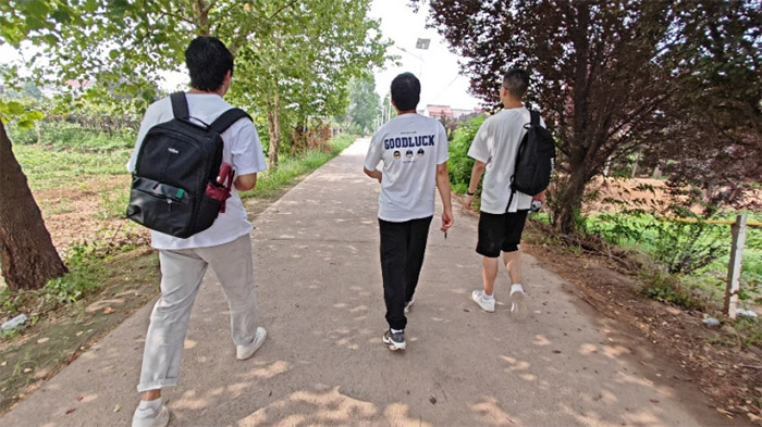 圖為實踐隊員在前往村中的路上。丁雨亭 供圖