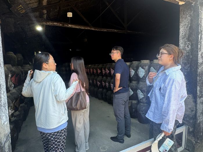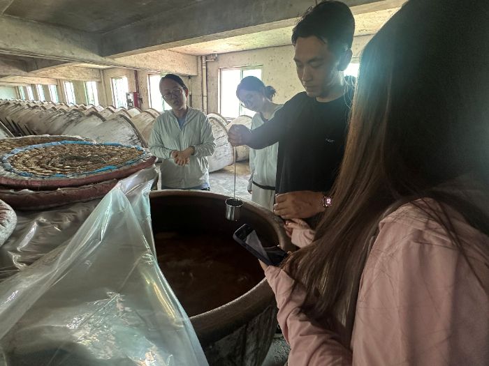 隨后,實踐團走進工廠車間和儲物車間,實地觀摩了黃酒的釀造過程和儲存方式,F代化的生產設備與傳統釀造工藝的完美結合,讓隊員們大開眼界。在釀造車間,工人們熟練地操作著設備,嚴格把控每一道工序,確保黃酒的品質。隊員們認真觀察,不時向工作人員提問,深入了解釀造工藝的細節和關鍵技術。在儲物車間,一排排整齊擺放的酒壇散發著醇厚的酒香,隊員們了解到黃酒的儲存條件對其口感和品質有著重要影響。這次實地參觀,不僅讓隊員們對黃酒的生產流程有了直觀的認識,也為他們在包裝設計中融入功能性和文化性元素提供了靈感。
