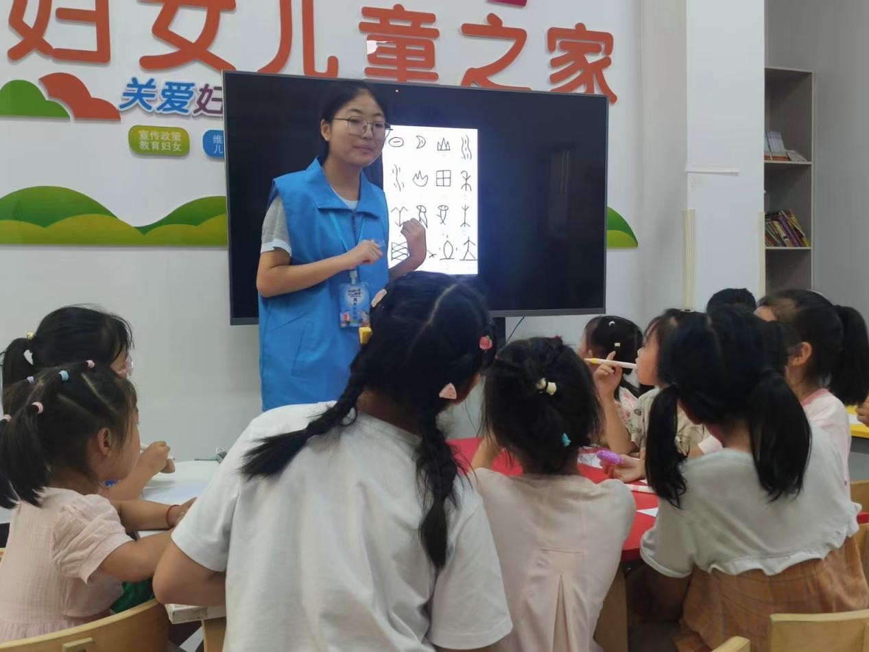 當午后的陽光逐漸變得柔和,白柳鎮的暑期活動也迎來了新的高潮。在自由活動的歡聲笑語漸漸平息后,孩子們帶著未盡的興致,轉戰到了甲骨文橡皮泥手工課堂。一張張稚嫩的臉上寫滿好奇,目光緊緊盯著電視屏幕那些神秘的甲骨文。
